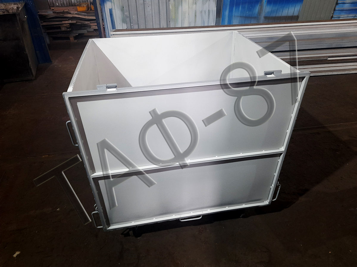The “TAF-87” enterprise produces Euro-containers for solid waste in the workshop using a sheet bending machine, guillotine, cutting and machining machines, which reduces the number of welding areas and improves the quality of the product. Welding is carried out semi-automatically, protective coatings are applied with a spray gun. It is also possible to design and manufacture according to individual dimensions (of any configuration).