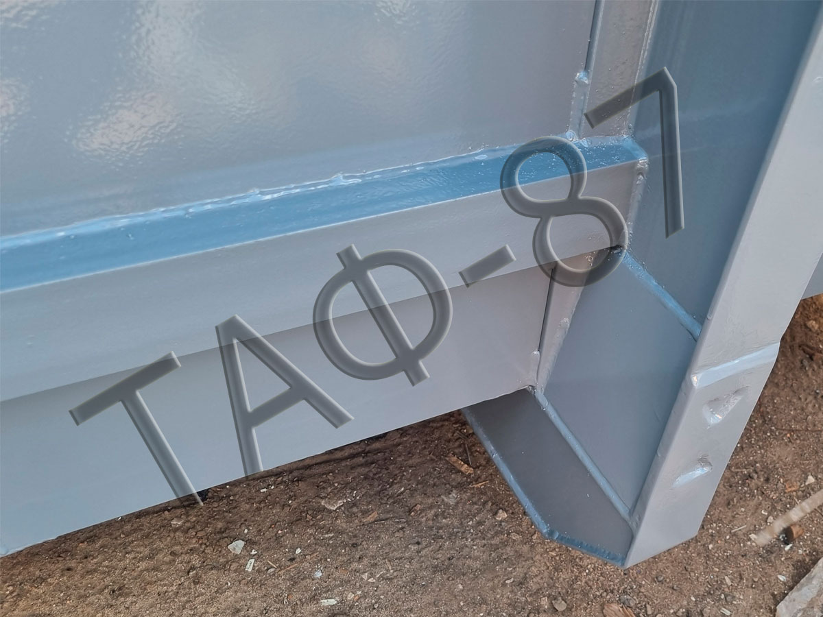 At the TAF-87 enterprise, the multilift container is produced in the workshop using a sheet bending machine, guillotine, cutting and machining machines, CNC plasma cutting machines, which reduces the number of welding areas and increases the quality of the product. Welding is carried out by a semi-automatic method, and protective coatings are applied by an air method. It is also possible to design and manufacture according to individual dimensions (of any configuration).